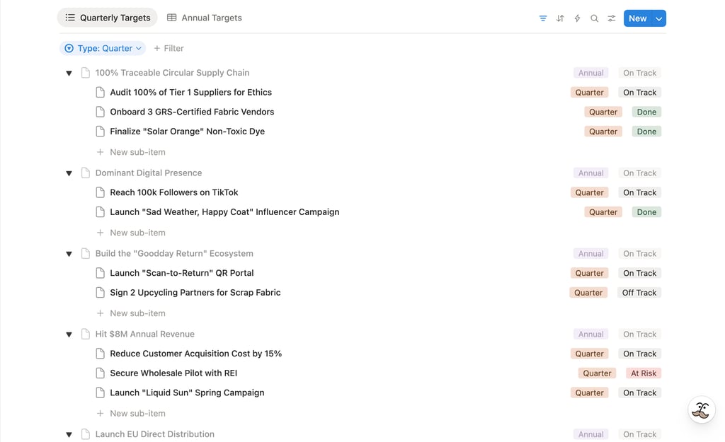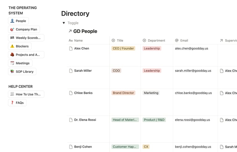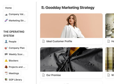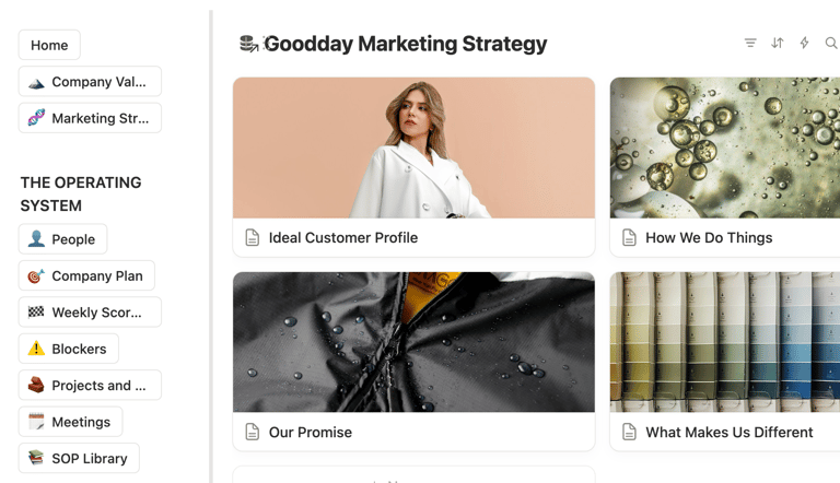 Move your company vision, goals, scorecard and data out of static spreadsheets into a single source of truth in the cloud. A secure, AI-enhanced workspace in Notion designed to centralize your company’s brain.